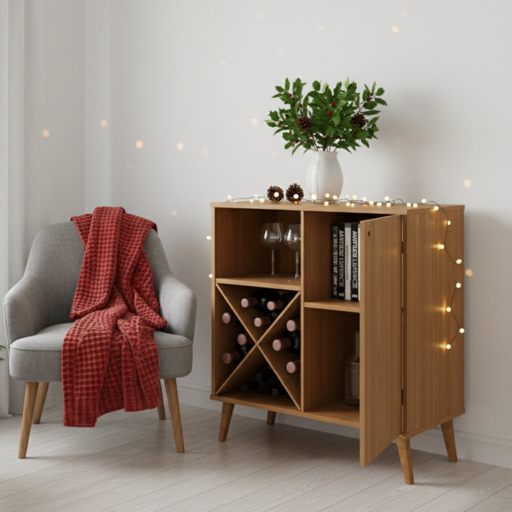 - Enclosed Cabinet for Hidden Storage: A sleek door with a modern cutout handle conceals glassware, bar tools, or additional bottles, keeping your space organized and clutter-free.