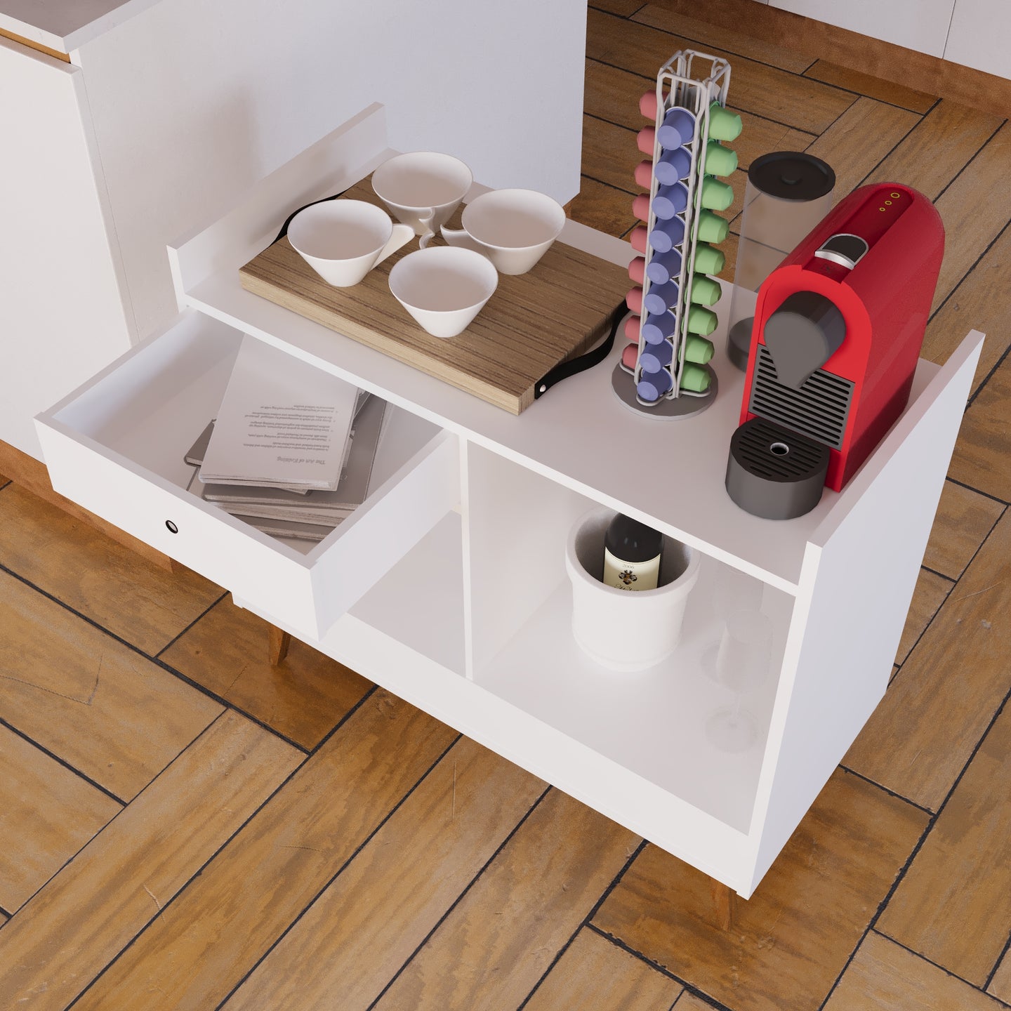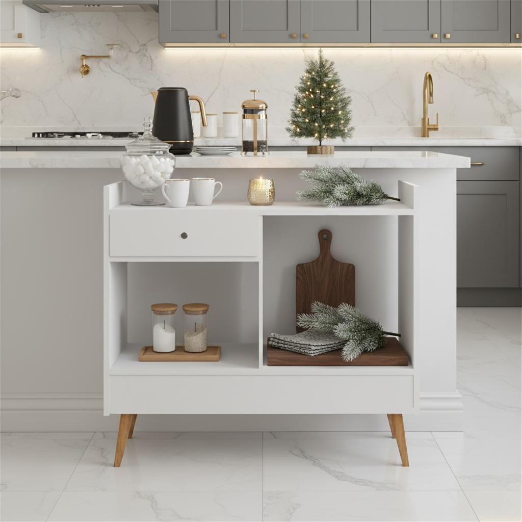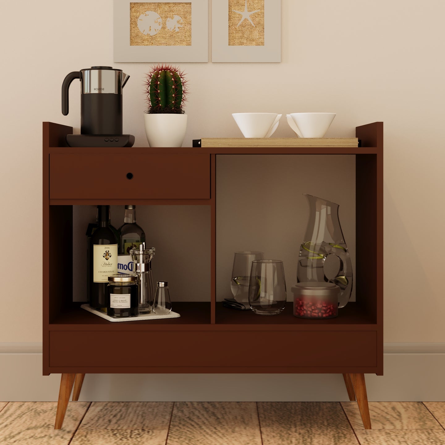 - Spacious Open Shelves: Two open shelves provide the perfect space to display glassware, liquor bottles, coffee essentials, or decorative pieces.