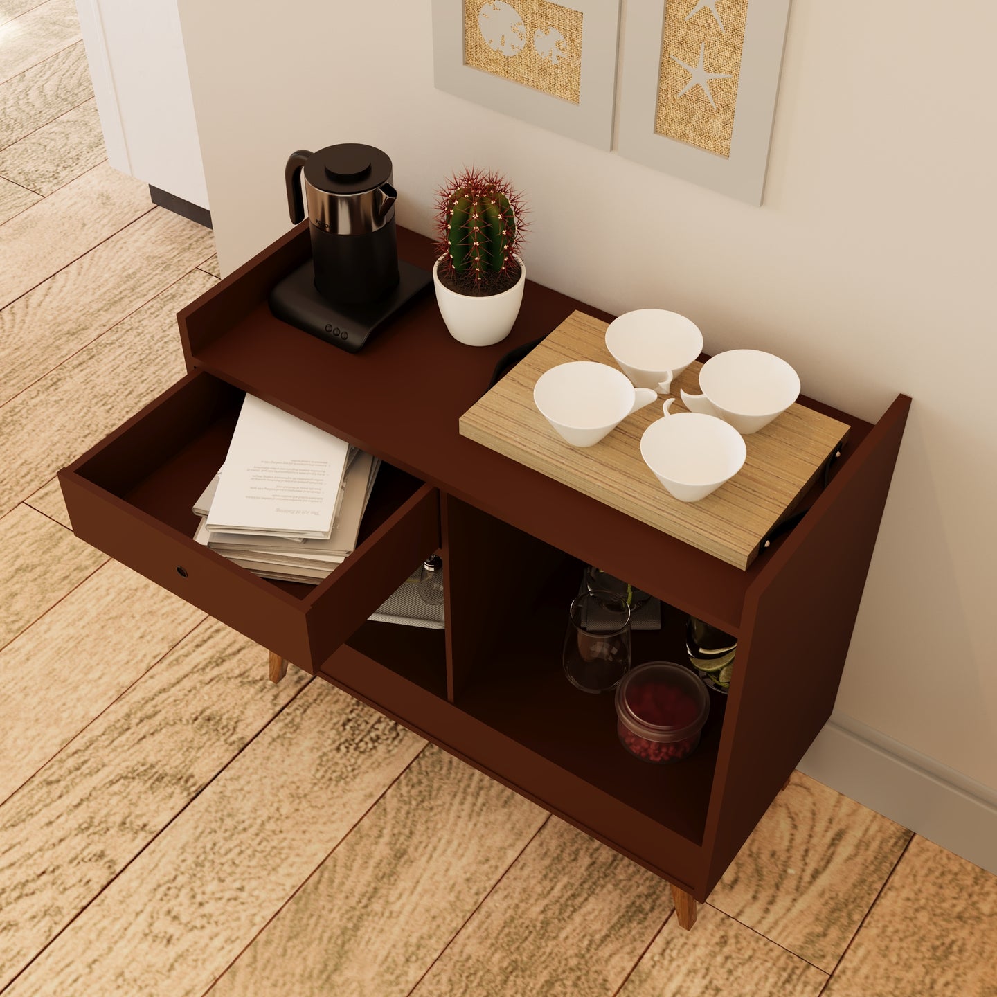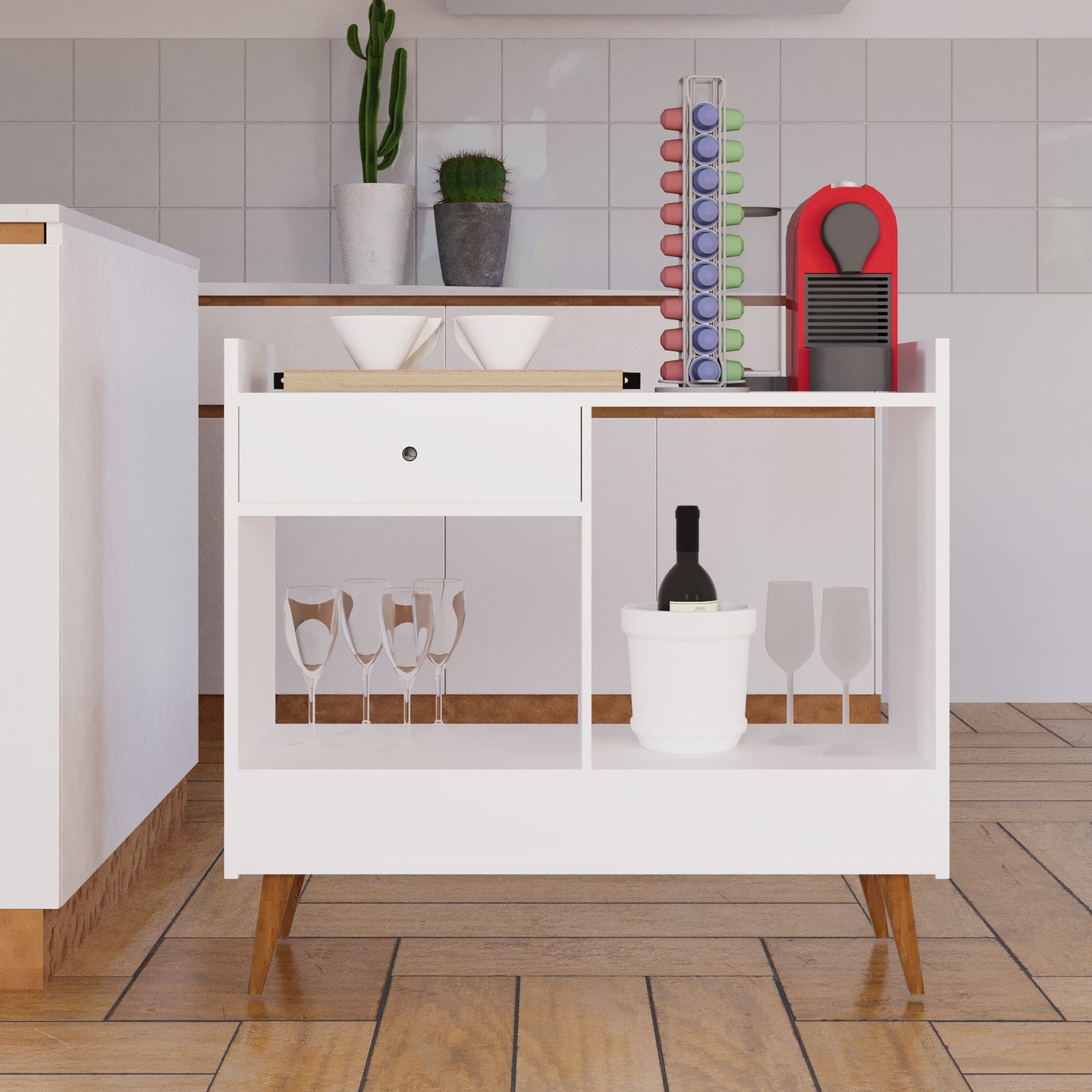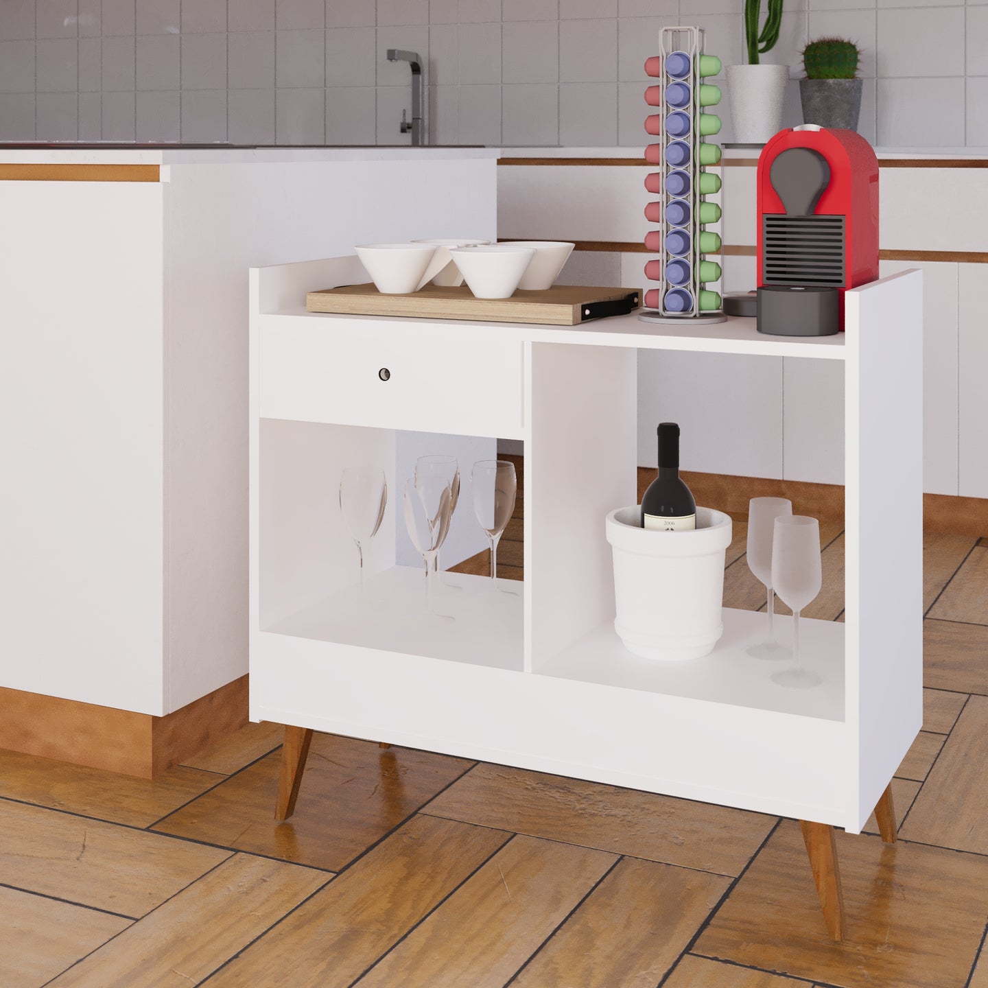 - Spacious Open Shelves: Two open shelves provide the perfect space to display glassware, liquor bottles, coffee essentials, or decorative pieces.