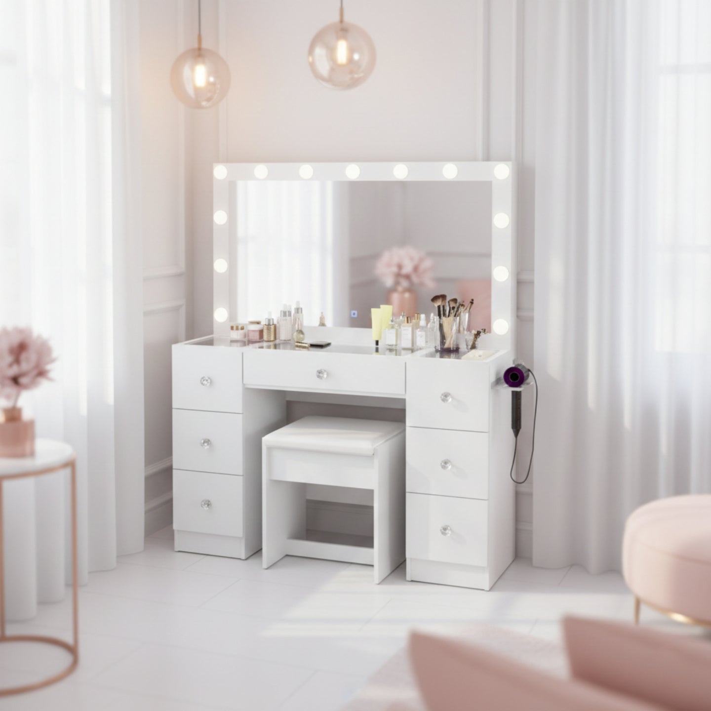 - 7 Spacious Drawers: Organize all your beauty essentials effortlessly.