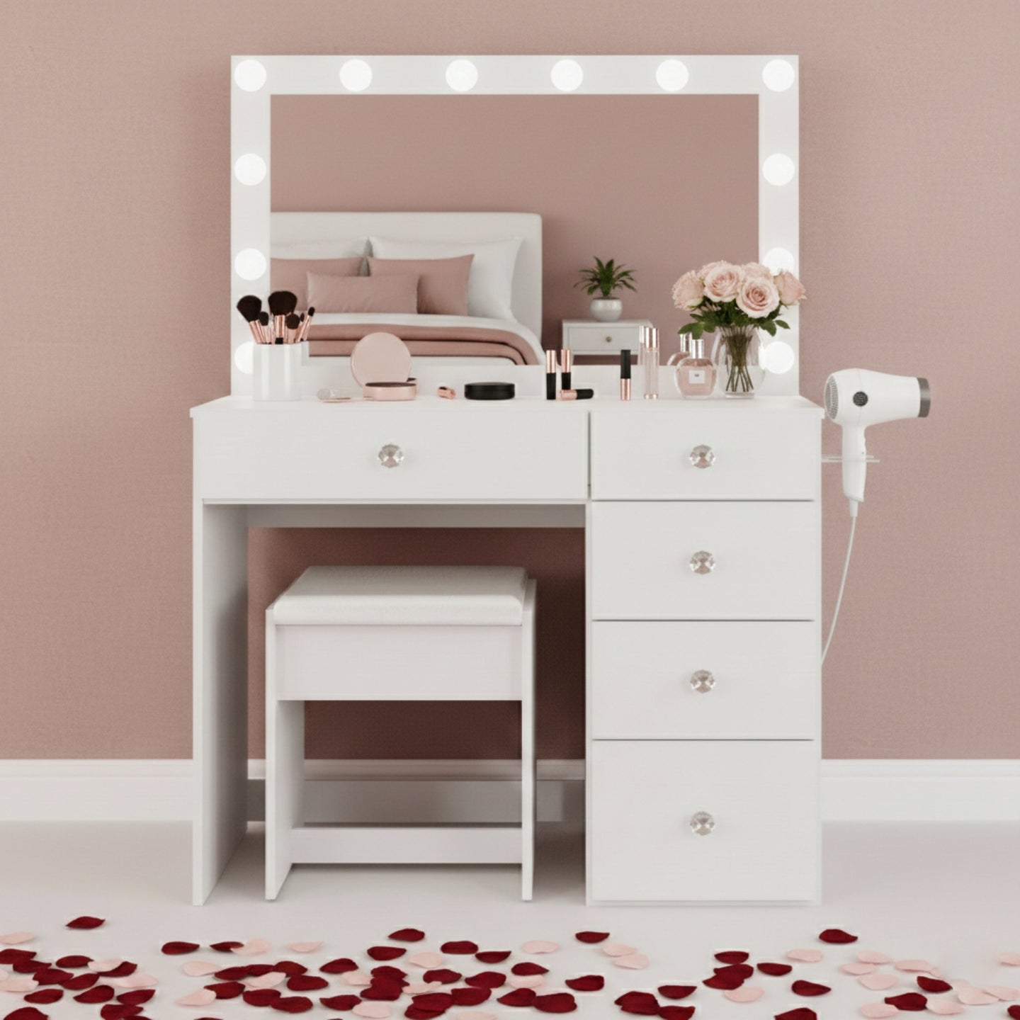 - Five Spacious Drawers: Keep makeup, brushes, and accessories neatly organized and within reach.