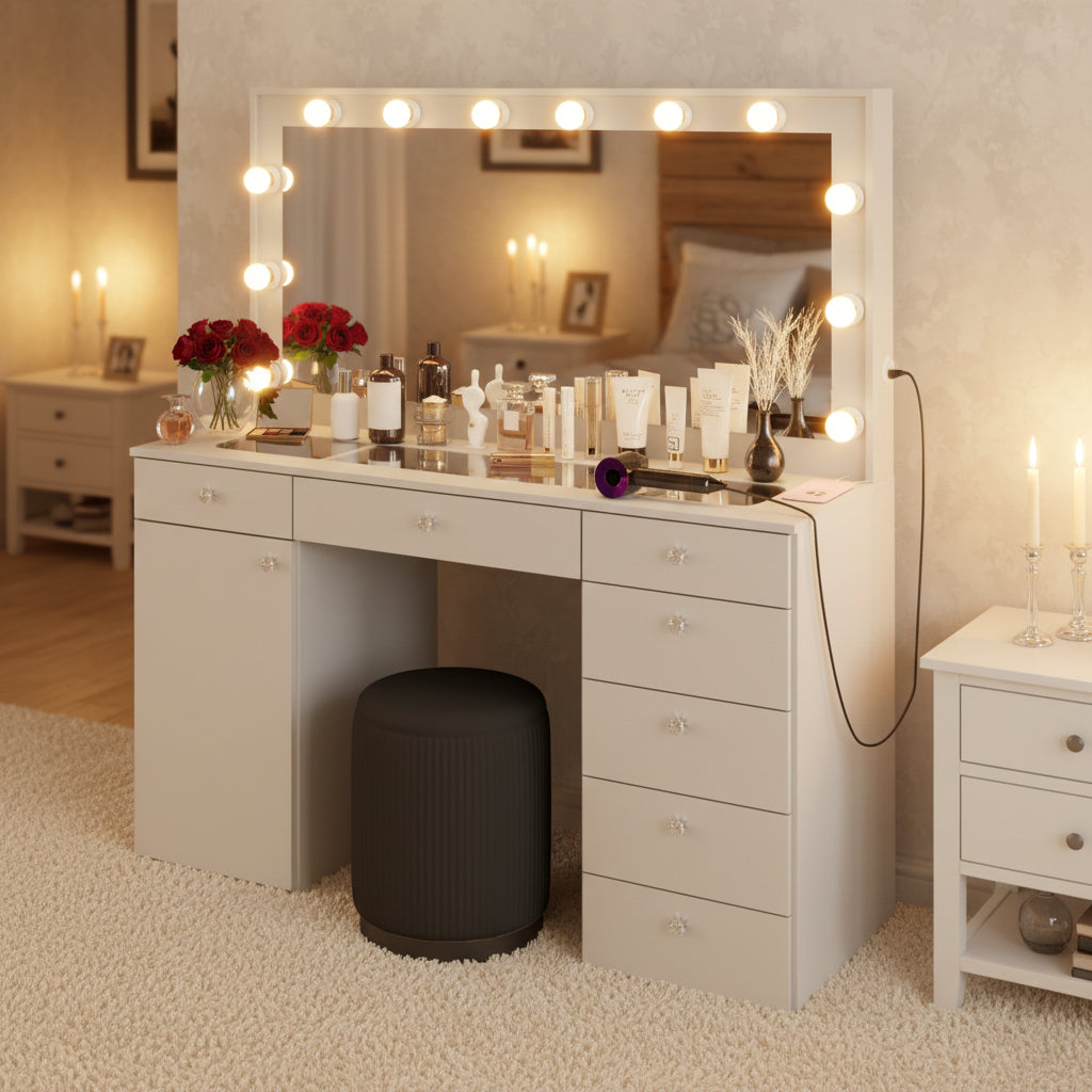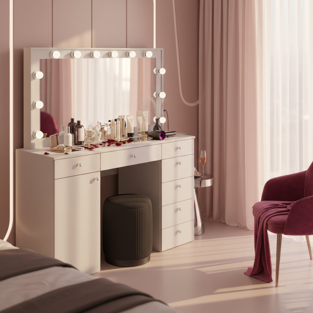 Comfort: Pair your vanity with a comfortable stool or chair to create a cozy, inspiring spot for your beauty routine.