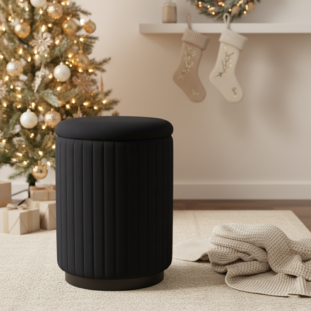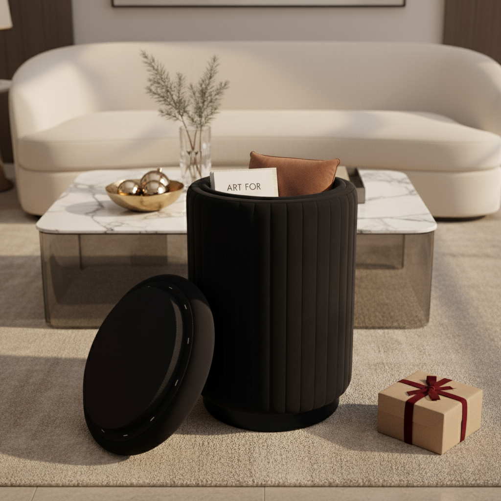 Plush velvet • Hidden storage • Multipurpose ottoman