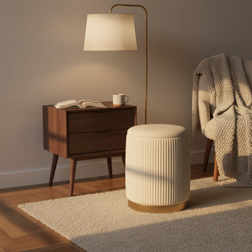 Its versatile design makes it perfect for multiple spaces — from the living room and bedroom to your vanity area. Use it as an extra seat, a stylish footrest, or a chic storage solution.
