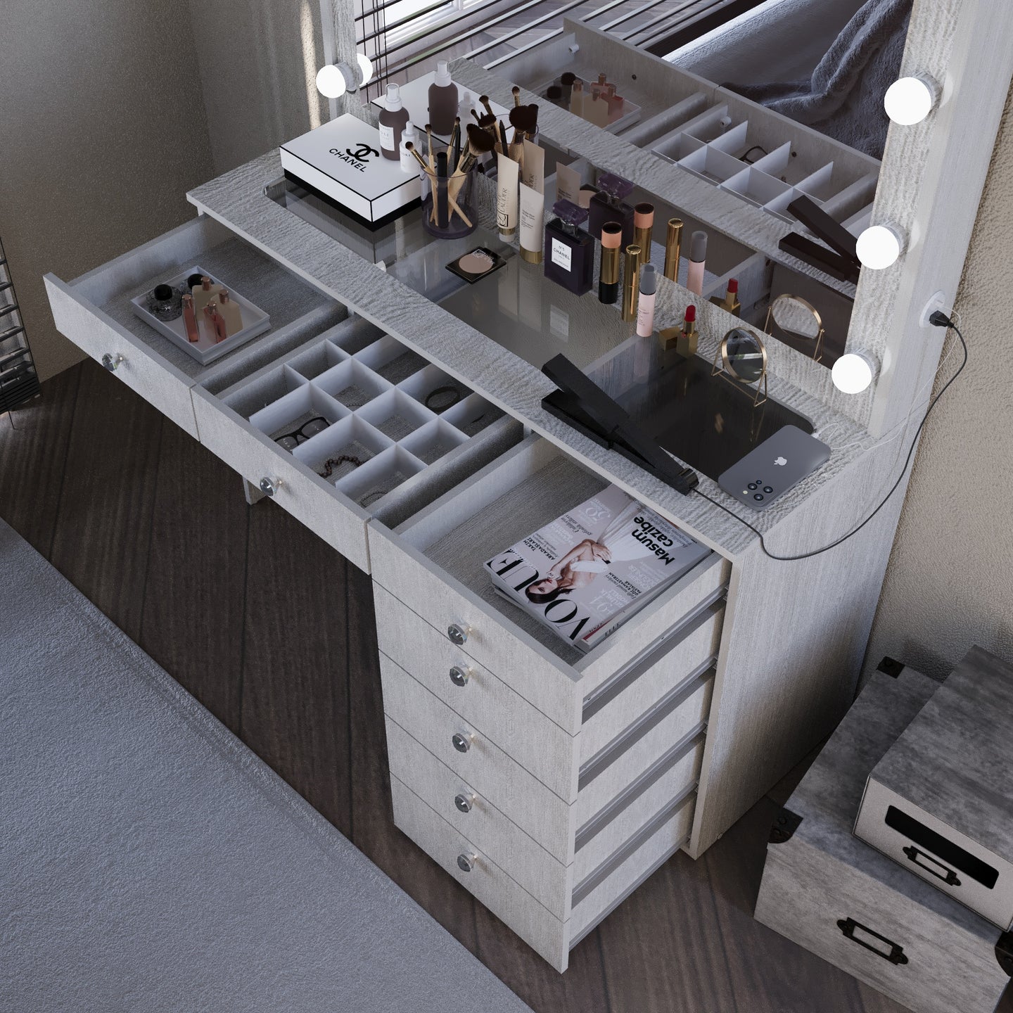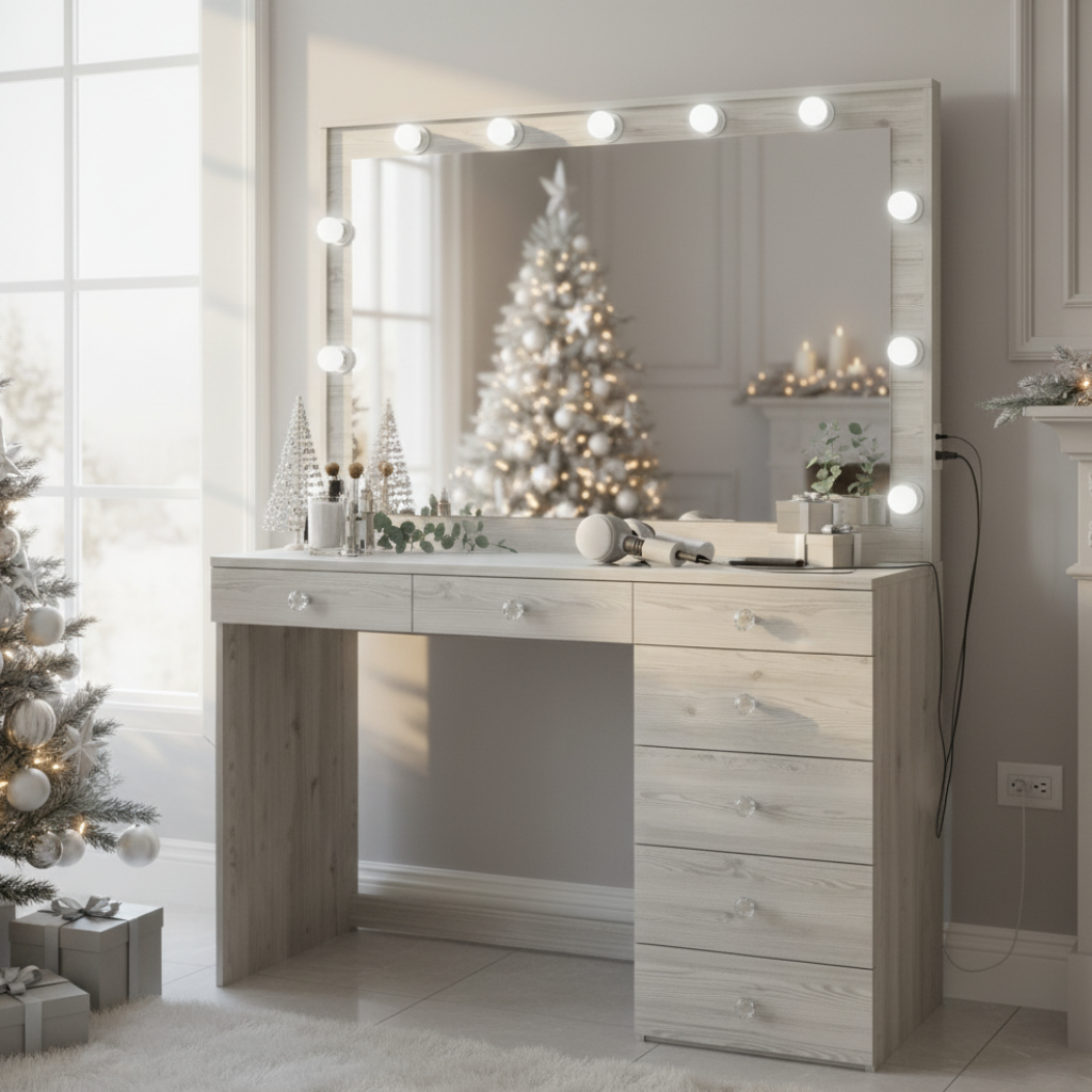 - 7 Spacious Drawers: Keep makeup, skincare, and accessories neatly organized and within reach.
